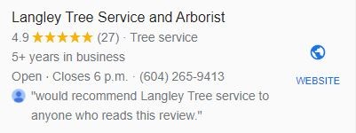 Langley Tree Service is a LICENSED & INSURED Fraser Valley tree removal company. Tree Services include tree and hedge trimming, tree removals, stump removal and grinding, tree felling, chipping, lifting, pruning, residential & commercial services & strata tree service. Serving the Langley, Surrey and Fraser Valley area since 2016. FREE ESTIMATES.