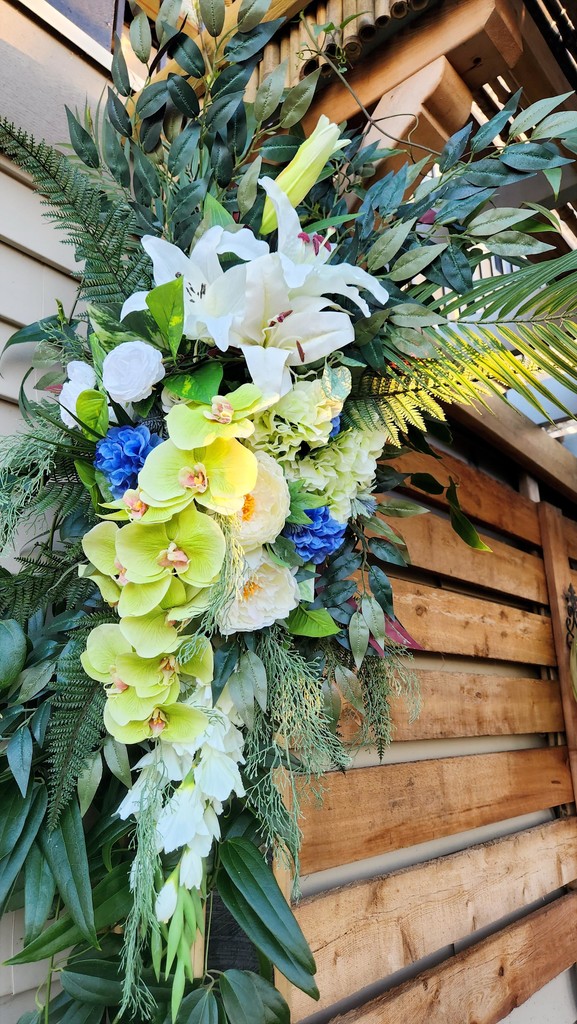 Woodland embrace design , easy to transport rentals , Garden Meadow Design , Tropical Vibes design , Custom design , Full service set up and strike , Faux n Fresh Floral Rentals , easy rental options