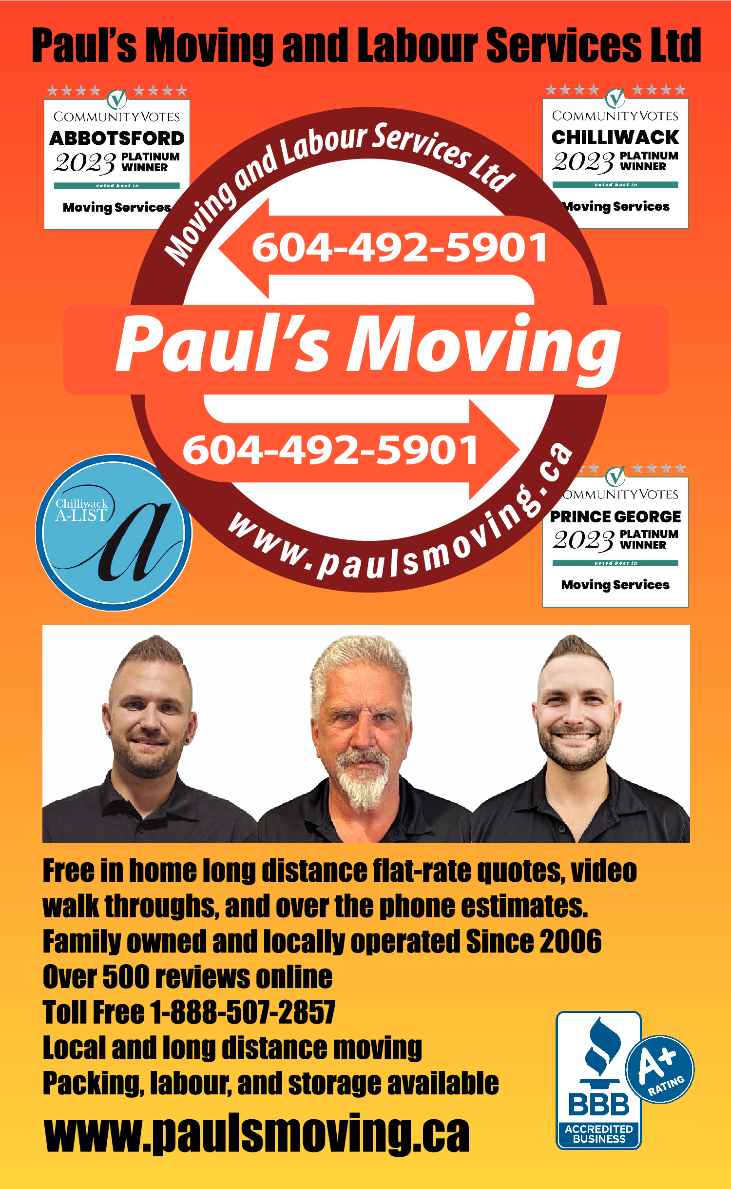 Names and Numbers Verified Moving Companies Moving & Storage Equipment Piano & Organ Movers Piano & Organ MovingSince 2006, Paul, s Moving and Labour Services has been your number one source for professional movers at a great price. Our Chilliwack, BC, Mission, BC and Abbotsford, BC locations proudly serve the entire Fraser Valley, Vancouver, Vancouver Island and all surrounding areas. We…